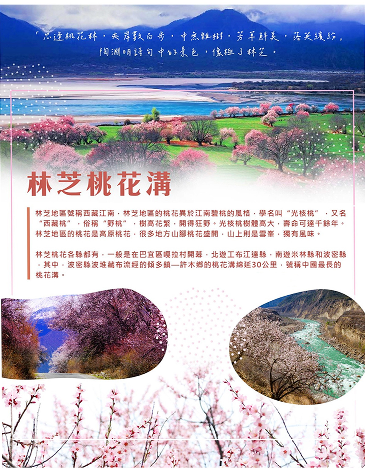 林芝:被稱為“西藏江南”的林芝地區位於西藏東南部、拉薩以東。林芝大部地區氣候濕潤,景色宜人,少數民族以門巴族和珞巴族為主。巴松措:巴松錯在藏語裡意為“綠色的水”是紅教的著名神湖。在巴松錯湖中有一紮西島,島上有一座錯宗工巴寺,是西藏有名的紅教寺廟,門口供奉著男女生殖器的木雕,生殖之神是高原居民的守護神。