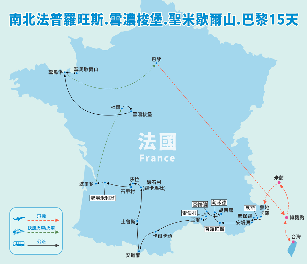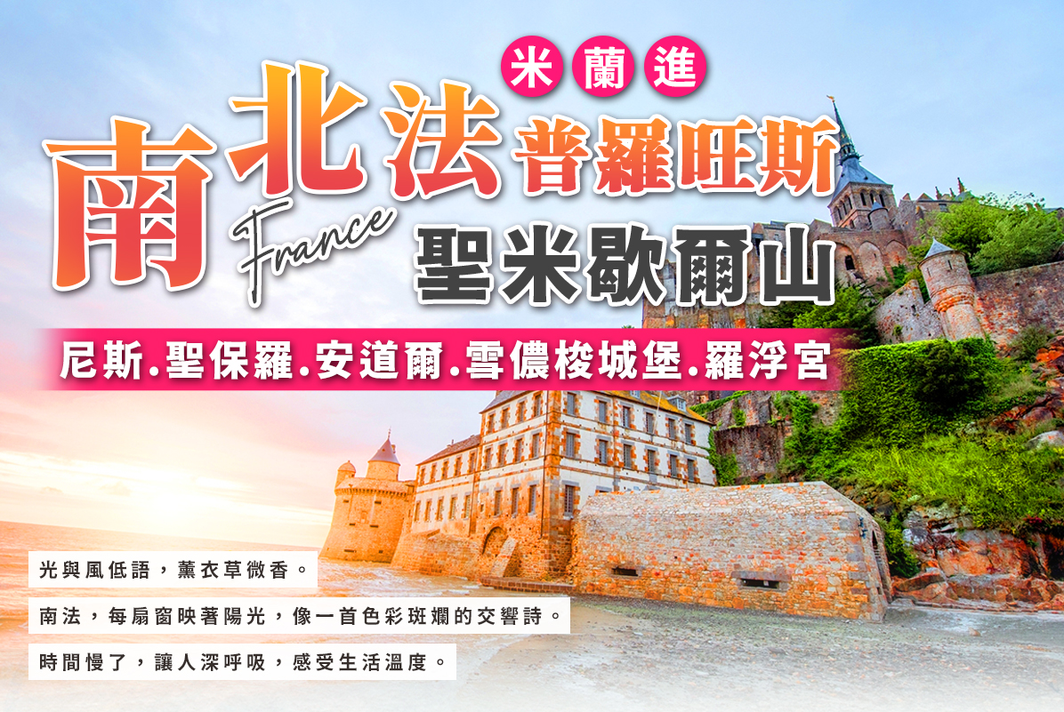 南北法普羅旺斯•雪濃梭堡•聖米歇爾山•巴黎風采15天