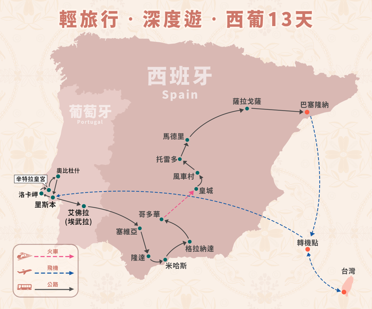 2027/01/14(四) | 桃園國際機場出發 西葡輕旅行13天~聖家堂、阿爾罕布拉宮、辛特拉皇宮、塞維亞大教堂、哥多華清真寺、白色風車村機位 21 候補0 已售0 可售20前10名優惠第2人減6000 |