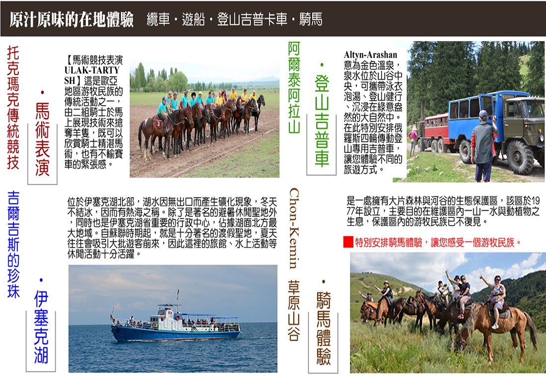 ★獨家安排穿越歐亞暢遊天山山脈絲綢之路上二大古國:哈薩克斯坦共和國、吉爾吉斯斯坦共和國。