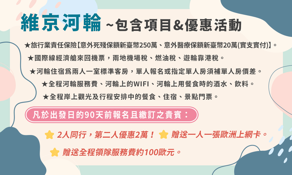 建議小費:隨團服務的領隊/導遊/司機:每位旅客每天12歐元。