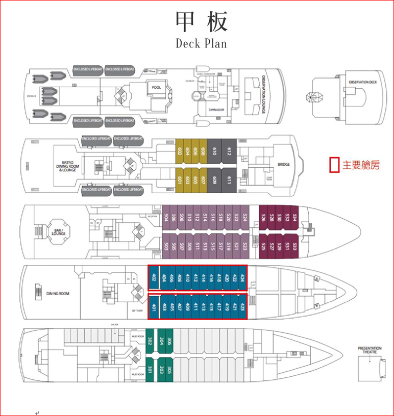 專門的酒店團隊,包括酒店經理、廚師、專業酒吧工作人員和探險禮賓人員船上桑拿、小型游泳池、按摩浴缸和菲蒂中心,包括按摩選項(收費按摩和護理)海上皮划艇專案可用(額外收費795pp) - 必須在預訂您的航程時預訂,你必須有一些事先的划船經驗 訪問儲備良好的圖書館充滿了參考書的航行結束視頻,照片和帶回家的USB埠費用和所有進入訪問區域的許可證