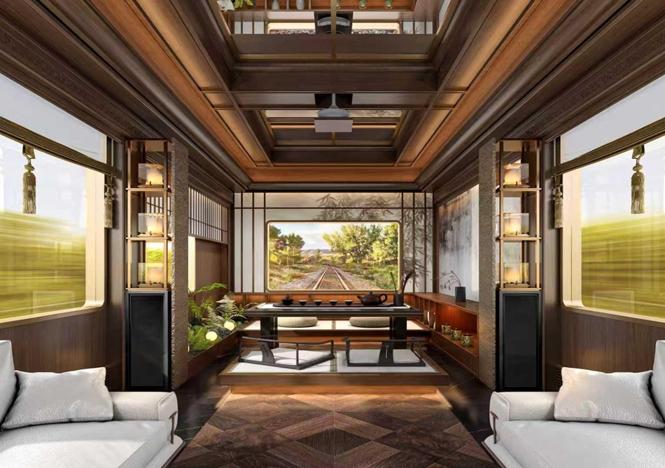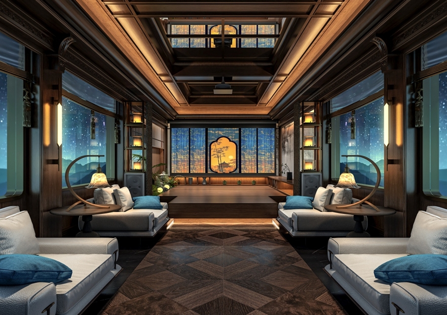【錦繡天府號專列】為貴賓們呈現了一場無與倫比的東方美學鐵道旅行體驗。在這趟旅程中,貴賓們將搭乘入住舒適的專列車廂,享受一流的設施與服務。車廂內裝潢典雅,設有寬敞舒適的座椅和精心佈置的休息區,讓旅途中的每一刻都充滿放鬆與愜意。