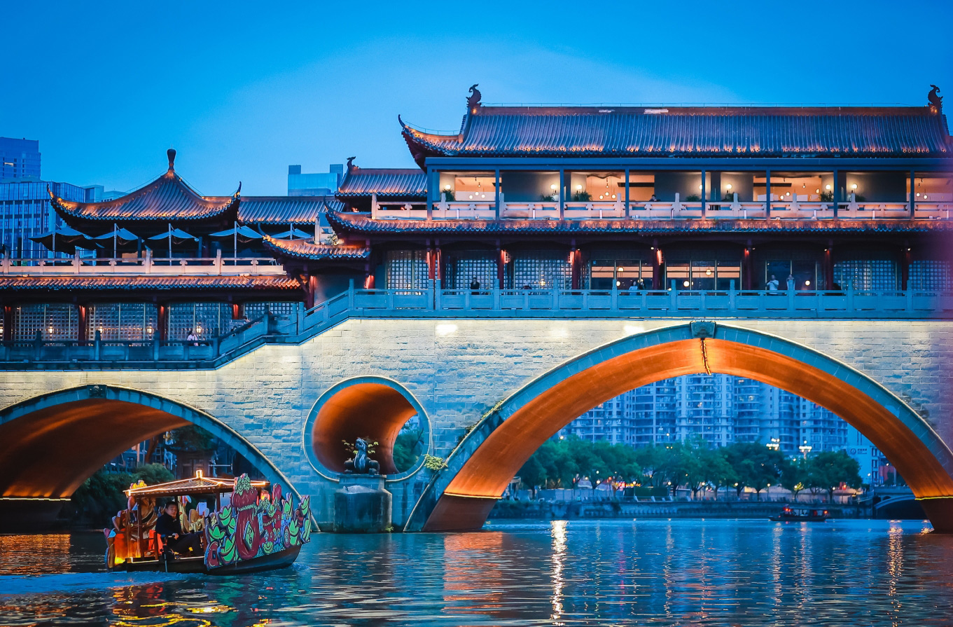 遊覽結束後享用晚餐,登乘錦繡天府號前往成都。