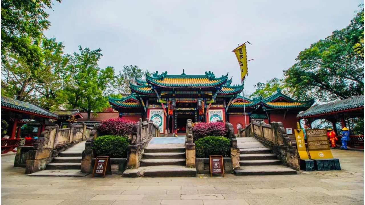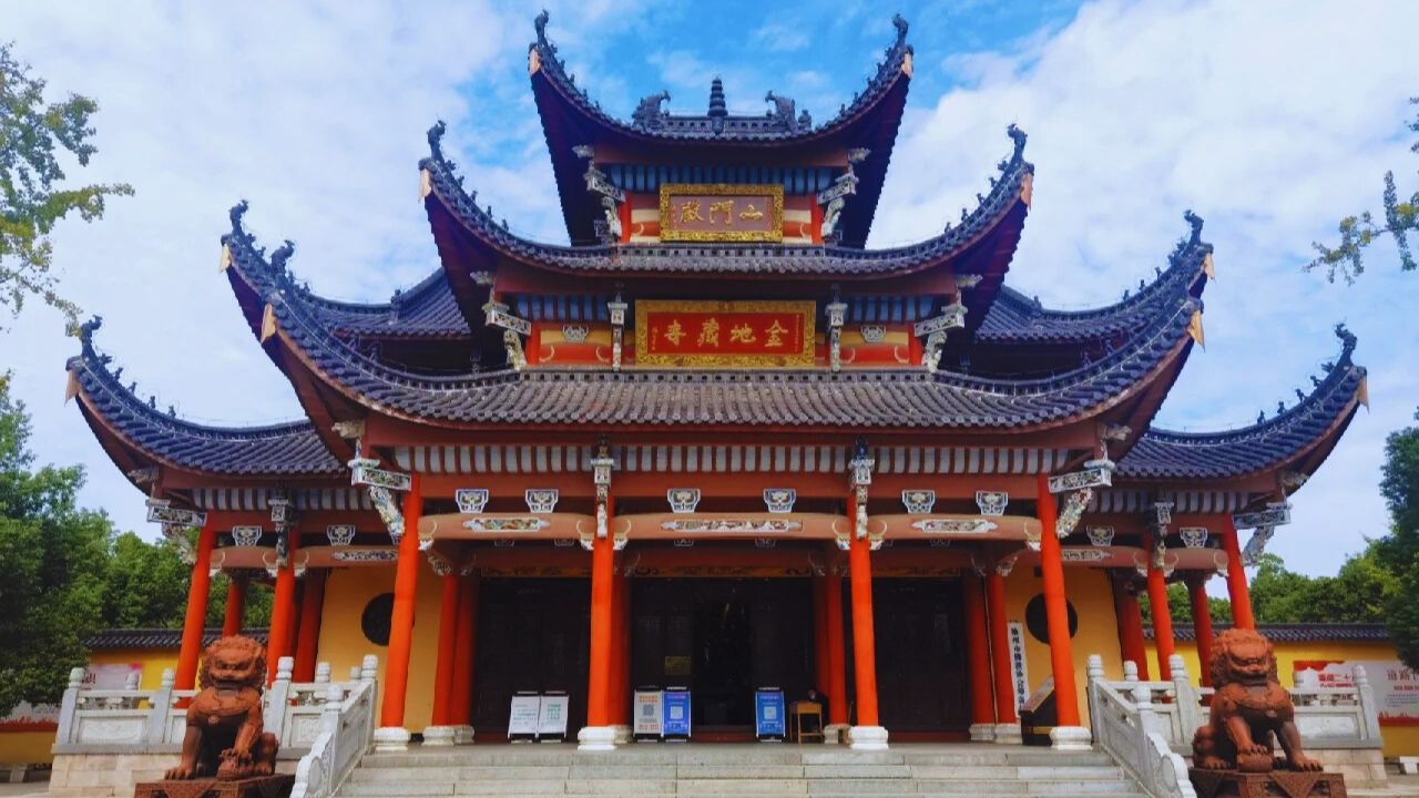【金地藏寺】坐落於安徽省池州市齊山腳下,齊山歷史上寺廟眾多,香火旺盛,尤以華蓋禪寺很具規模。金地藏寺的院落佈局共有七進式的大殿,中間較寬處有五座建築並排。整個佛殿佈局似濃縮的皇宮氣勢,很氣派的是每進大殿內都有立體巨型的佛像!釋迦牟尼佛、葯師佛、阿彌陀佛,地藏、觀音、普賢、文殊等菩薩,都有各自的聖殿供奉著。是非常正規的佛教寺廟。