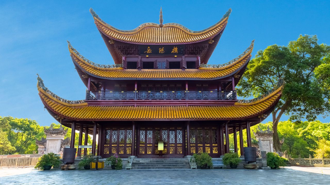 【岳陽樓】嶽陽樓屹立在洞庭湖畔,是古建築中的瑰寶,自古有洞庭天下水,嶽陽天下樓之譽。嶽陽樓是什麽時候建的,說法不一。一般都認爲它始建于唐,後毀於兵燹,北宋年間重修和擴建。