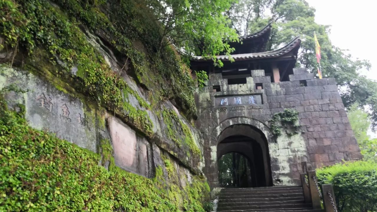 【釣魚城】主要景觀有城門、城牆、皇宮、武道衙門、步軍營、水軍碼頭等遺址,有釣魚台、護國寺、懸佛寺、千佛石窟、皇洞、天泉洞、飛簷洞等名勝古跡,還有元、明、清三代遺留的大量詩賦辭章、浮雕碑刻。釣魚城的現城牆是在原城牆的基礎上重新修建的,因此依然極為壯觀。從城牆古炮臺的垛口向城下遠眺,滾滾的嘉陵江奔騰而流,而順江而下卻是嘉陵江、涪江、渠江的匯合口,在城上可以清晰看出釣魚城是處於三江的懷抱中。站在城牆邊的古炮臺前凝思神想,鐵馬金戈的交戰聲猶在耳畔迴響。戰爭的硝煙雖已遠去,但釣魚城上那8公里的城垣、8道城建門,以及炮臺、墩台、棧道、水軍碼頭、兵工作坊、軍營等宋、元軍事及生活設施等等遺址卻可以從中清晰地看出當年戰爭的印跡。就連現在供人們住宿的“古軍營山莊”的稱謂都有著濃鬱的軍事色彩。此外,其地處嘉陵江、渠江、涪江匯流之地,在嘉陵江環抱之中,風調雨順,氣候溫和,四季特徵十分顯著。具有春花艷麗、夏荷田田、秋色爛漫、冬景溫婉的季節特色。