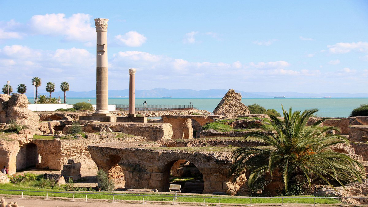 ★迦太基古城遺址位於今日突尼西亞首都突尼斯附近,是古代強大海上強權「迦太基文明」的中心。公元前9世紀由腓尼基人建立,曾與羅馬帝國爭霸地中海,最終於第三次布匿戰爭中被毀。今日遺址可見古羅馬浴場、劇場與港口遺跡,是聯合國教科文組織列名的世界文化遺產,見證迦太基輝煌與羅馬征服歷史。