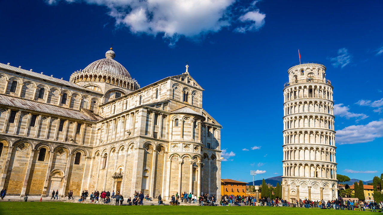 義大利世界遺產之三!世界七大奇蹟●比薩斜塔,位於義大利托斯卡納省比薩城北面的奇蹟廣場上,相鄰的大教堂、洗禮堂、墓園均對11世紀至14世紀義大利建築藝術有巨大影響,這三座重要的建物和墓園卻分別在不同的年代先後興建完成;大教堂(建於1063年-13世紀)、洗禮堂(建於1153年-14世紀)、鐘樓(即比薩斜塔,建於1173-1350年)和墓園(建於1278年-15世紀)。當中的鐘樓(比薩斜塔)除了是世界遺產的一部份,也是世界七大奇蹟之一。