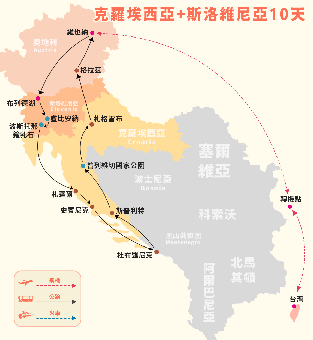 維也納VIENNA -401KM/4H34M布雷德湖BLED LAKE -198KM/2H14M盧比安納 Ljubljana
