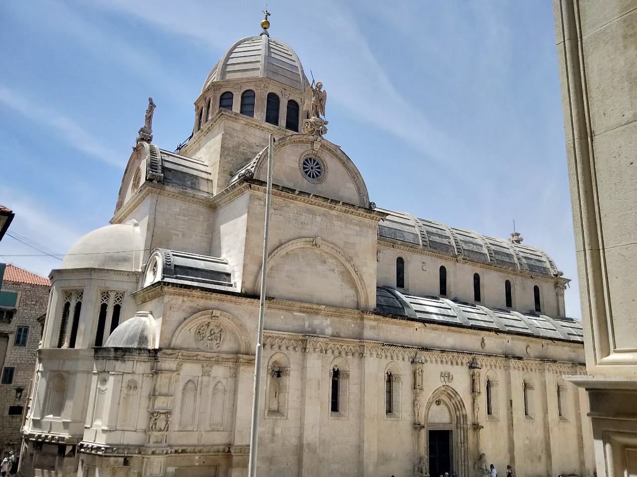 沿著萬頃碧波的亞得里亞海岸,我們前往達爾馬提亞海岸的古城——史賓尼克。因其地理位置為海上交通門戶,歷史上逐漸發展為重要觀光重鎮。行程中特別安排參觀聖雅克大教堂(St. James Cathedral),建於14世紀,融合哥特式與巴洛克建築風格,是當地重要宗教中心。教堂內祭壇、雕刻與壁畫精美絕倫,從裡到外皆為建築傑作,並於2000年被聯合國列為世界文化遺產,是遊覽杜布羅尼克不可錯過的景點。