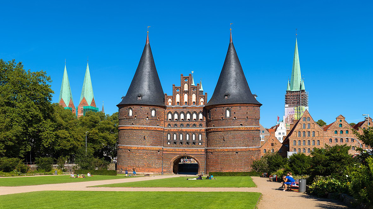 ●霍爾斯滕門Holstentor可說是德國最知名的城門,宏偉的雙塔建築象徵了這個漢薩同盟之后過往的榮耀,於1987年被列為世界文化遺產。 這座城門始建於1464年,在同盟全盛的年代裡肩負起守衛漢薩首府安全的責任,在典型北陸磚造哥德式外觀之下的厚重城牆即是其過去職責的最好證明。城門上的同盟格言:CONCORDIA DOMI , FORIS PAX (對內一致,對外和平)正是這一段歷史的寫照。