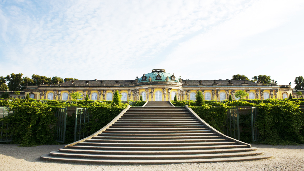 無憂宮SchlossSanssouci(含語音導覽),是來自於法文sans(無) souci(憂慮),是當時普魯士國王「腓特烈二世」希望可以有一個讓自己遠離宮廷政事的地方所建造的,而無憂宮建造於1745年,走的是洛可可式的宮殿風格,並於1990年被聯合國教科文組織將無憂宮和其公園列為世界文化遺產,因為它的存在可以被視為普魯士的凡爾賽宮。