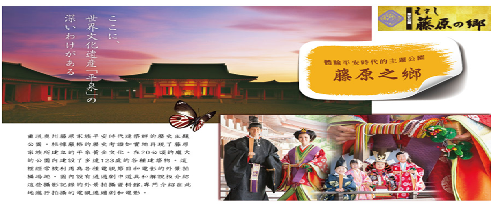 【江刺藤原之鄉歷史主題公園】有日本東北好萊塢之稱的,這個約有20公頃的主題公園,由於重現了120多幢東北地區歷史建築物特有的建築物,如豐田館、寢殿造、無量光院‧柳之御所,以及伽羅御所內的建築物等。進而成為日本的大河劇或是廣告拍攝的舞台。而園區內有著許多能體驗中世紀日本生活的活動項目,今日則帶您前往體驗平安貴族的日常生活,來一趟穿越平安時代之旅。