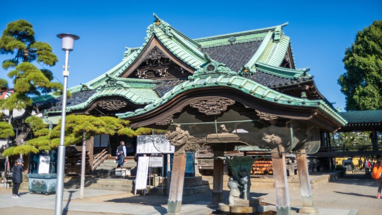 【柴又帝釋天】正式名稱為「経榮山題經寺」。據說參拜這裡能保佑疾病得到治癒而且相當靈驗,將近400年來深受民眾的信仰。環繞在帝釋堂周圍的黑松,直直地向上方延伸的樹幹與向三方直長延伸的大樹幹所形成外觀,看起來就像飛龍升天一般,因此有了「瑞龍之松」的稱號。