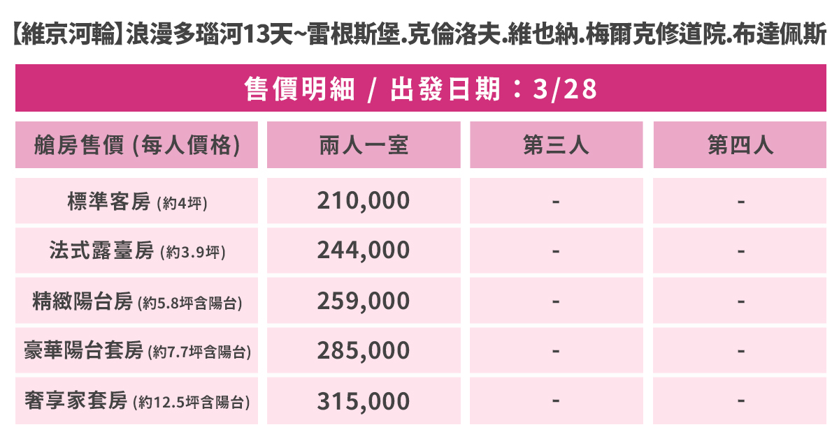 住宿:維京河輪 Viking River Cruise(Eistla/Bestla/Odin/Njord)兩人一室標準客房
