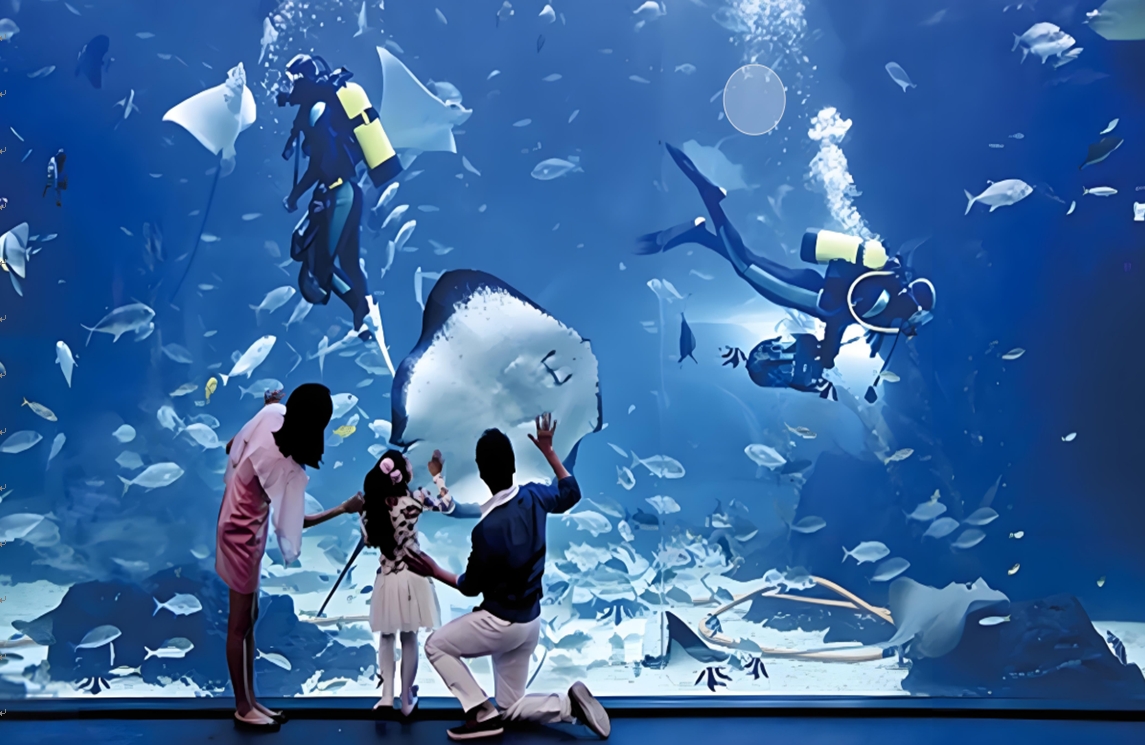【一山韓華Aqua planet水族館】2015年四月開幕的複合水族館,共有4層,主要劃分了兩大區域:一個是展覽海洋生物的「The Aqua」和另一個是展示陸地動物的「The Jungle」,亦是現時首爾規模最大的水族館。除了展示海洋生物外,更有像海象、水獺和企鵝等水陸動物;以及美洲豹和環尾狐猴等陸上動物;更有鳥類等共220種類的生物,合共25,000隻動物群聚一堂。除了可以觀賞動物,水族館更安排了多個表演節目,每天定時上演,供遊客欣賞。其中最特別的是「Aqua Dream」表演,在館內最大的水槽Deep Blue Ocean中,3位潛水員會與鯊魚、魔鬼魚等動物共舞,且拼湊不同的圖案,配合特別燈光和音樂,為觀眾帶來一場精彩的水上芭蕾。