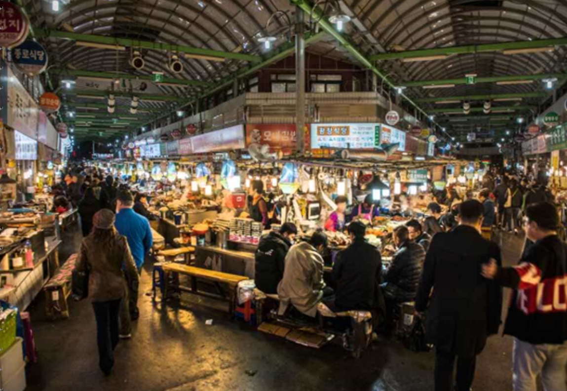 【廣藏市場】沿著清溪川畔,走著走著就可以抵達廣藏市場。其面積約有八個足球場。廣藏市場設立於1905年,也是韓國第一個常設市場,現在已成為極具代表性的觀光景點,是來到韓國的外國觀光客必訪景點之一。市場內聚集的布料批售、韓服、傳統飾物、各種民生食物:蔬果、人蔘、藥材,最熱鬧的地方,是東門、北2門、南1門道路交會處形成的小吃區,傳統韓食:綠豆煎餅、飯捲、辣炒年糕、血腸等等等,都可讓您體驗自行覓食的樂趣與滋味!