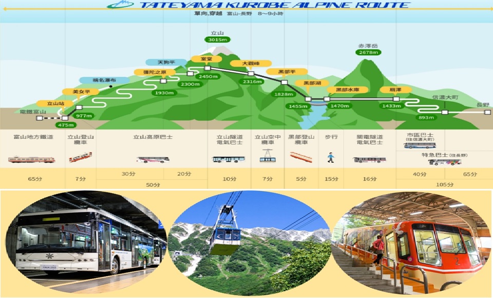 ★利用6種不同交通工具登上立山黑部峽谷連峰