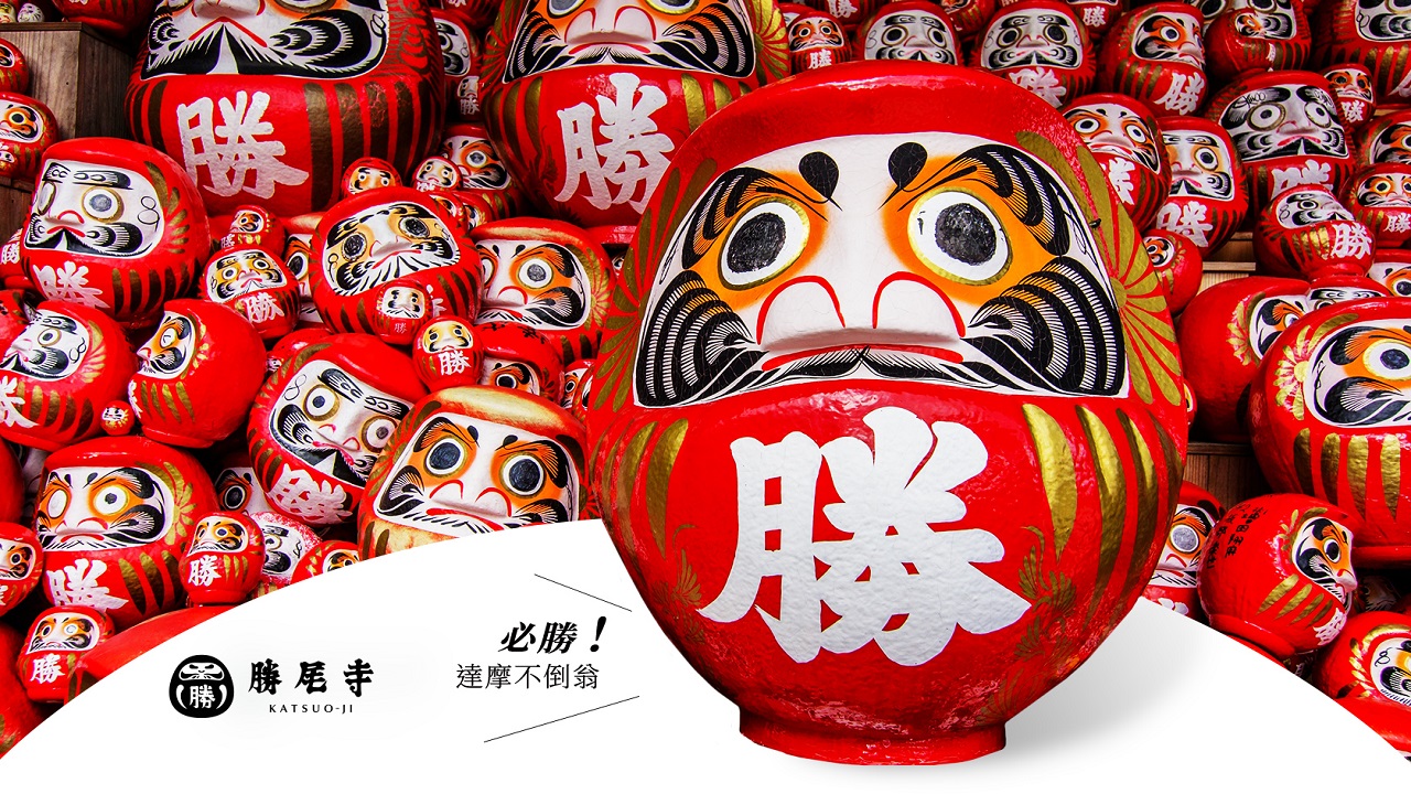 【勝尾寺】位於大阪箕面市的「勝尾寺」,以境內遍佈的「達摩不倒翁」而聞名,也被尊崇為祈求勝利和吉祥的寺廟。對於祈求合格與勝利十分靈驗,不但是許多生意人和學子喜歡參拜的地方,自古以來更是將軍武士以及現今政治人物等渴求勝運之人的信仰中心。