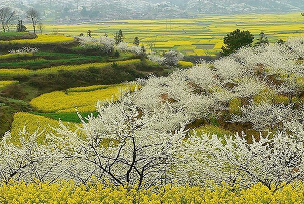 【金海雪山景區】上萬畝的黃燦燦油菜花田與千頃滿山遍野的雪白李花,粉紅桃花,爭奇鬥艶。