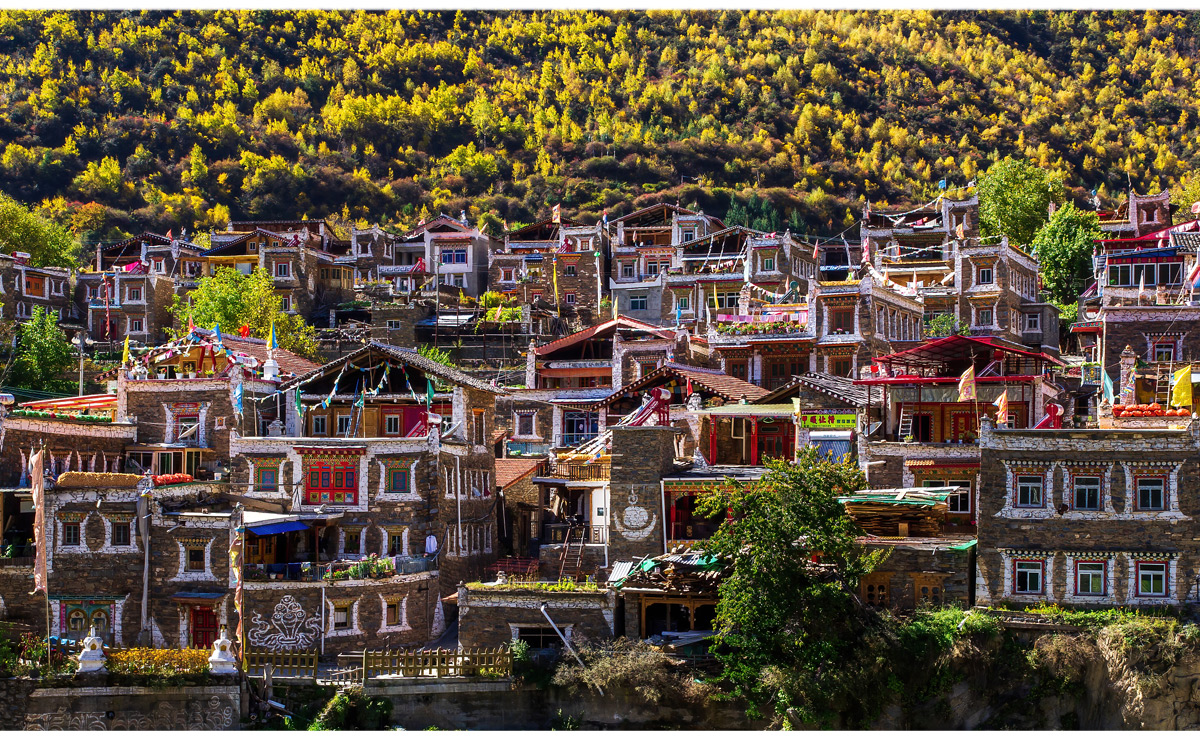 【甲居藏寨】位於甘孜州丹巴縣境內,距離縣城約 8 公里,是最具嘉絨藏族特色的藏民居村寨。