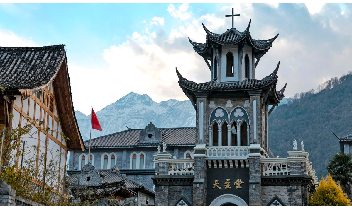 【天主堂】位於中國四川省甘孜藏族自治州瀘定縣磨西鎮,屬天主教康定教區。