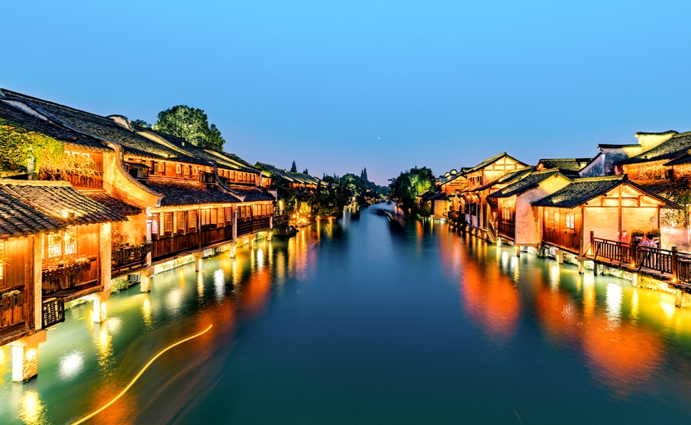 【烏鎮西柵景區-夜景】不同的風情,人們常說的「宿在烏鎮,枕水江南」就從一個側面解讀了烏鎮夜色的時控的泛光照明陸續亮起,將整個西柵勾畫得晶瑩剔透。