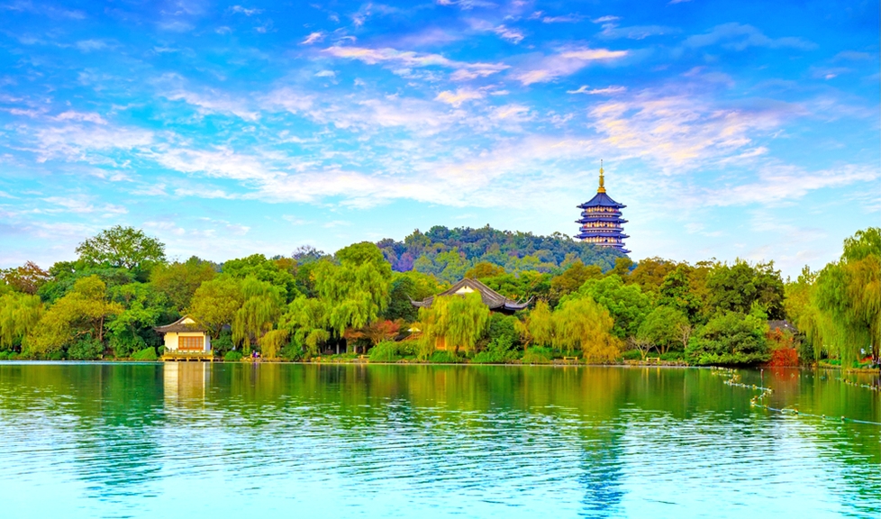 【船遊西湖】又名錢塘湖,位於中國浙江省杭州市西湖區龍井路1號,杭州市區西部,匯水面積為21.22平方千米,湖面面積為6.38平方千米。