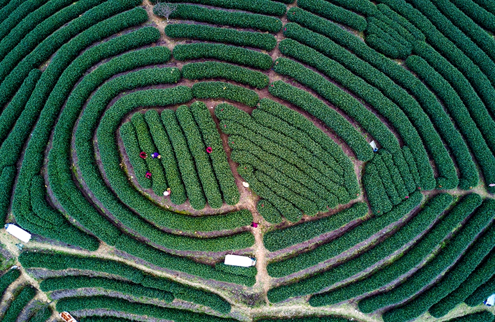 【萬畝春色茶園】3月下旬,浙江省杭州市富陽區拔山村的萬畝茶園迎來了春茶採摘季。該村莊經過了幾年的美麗鄉村精品村建設,拓寬了進村道路,村莊整齊潔淨,茶園中打造了茶文化公園,還修建了環繞茶山的車行道和山腰的“觀茶亭”,吸引著各地遊客前來旅遊賞景。