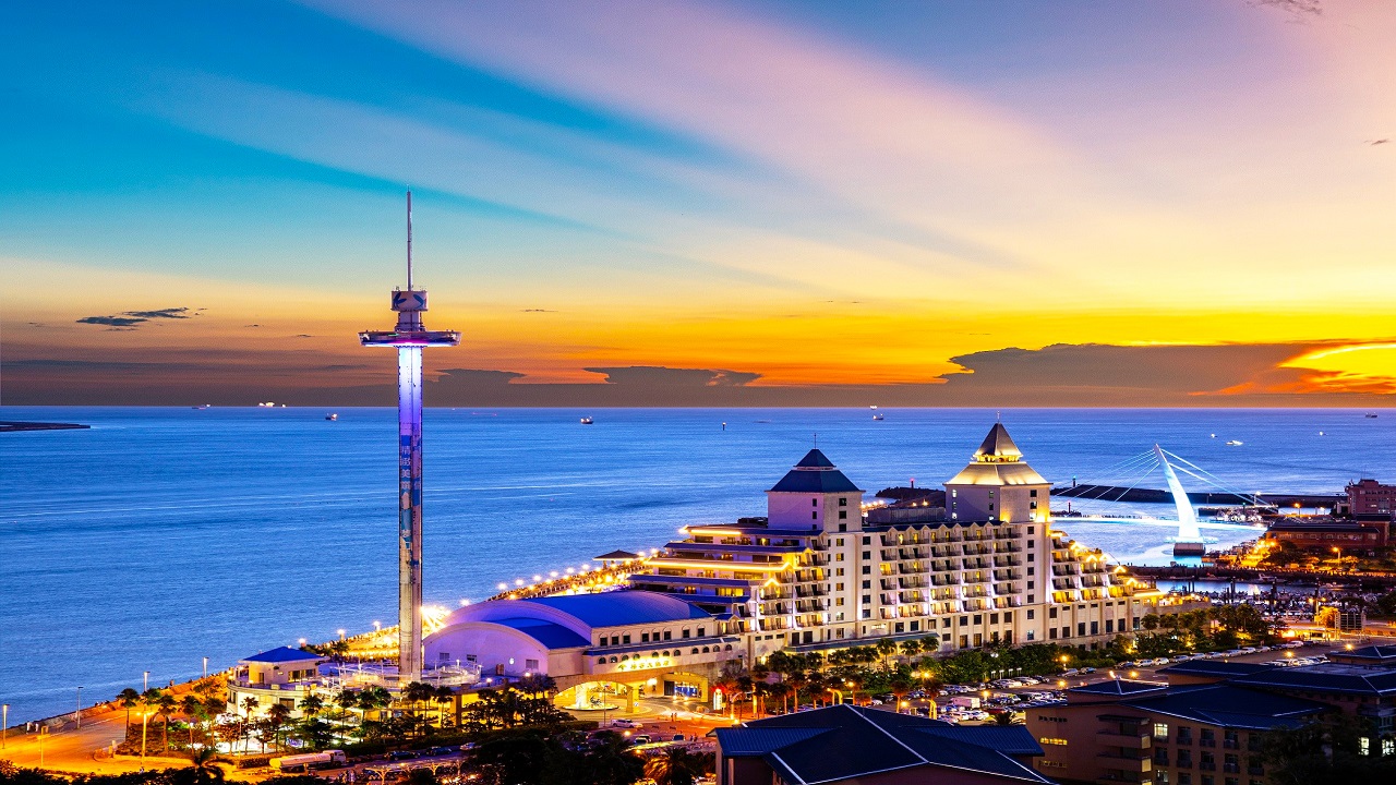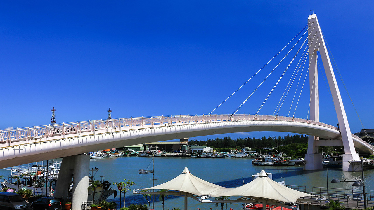【淡水漁人碼頭】將漁人碼頭打造成一個具備國際級水準的觀光碼頭。進到漁人碼頭,遠遠就看到著名的「情人橋」,以流線的單面斜張橋橫跨港區,白色的橋面在燈光的照射下變化多端。港口旁仿若巨型郵輪的郵輪飯店,成為當地顯目的地標,也提供留下來欣賞夜景的旅客一個休憩過夜的地方。園區裡的觀光漁市,可挑選新鮮現撈的魚獲交給店家料理,多元化的商店街與藝術大街,充滿了各式各樣的創意禮品,平穩的木棧道與堤岸咖啡是情侶們約會的遊憩景點,每當到了黃昏的魔幻時刻,看著太陽緩緩落入水平面,天空多層次的顏色變化,美不勝收,令人流連忘返。