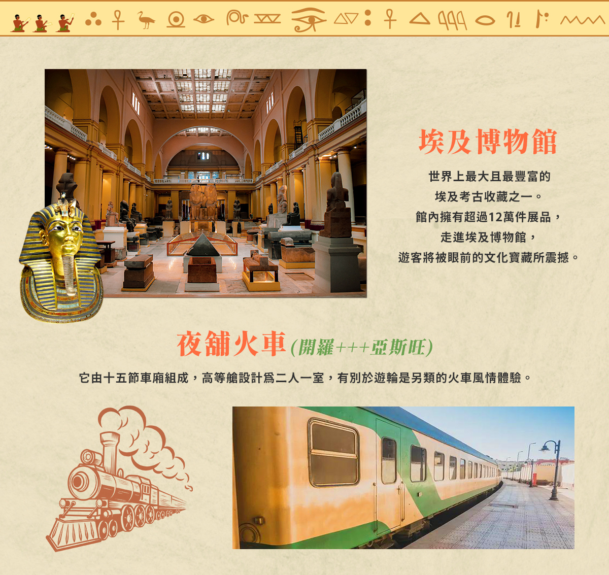 ※從開羅到亞斯旺安排夜臥火車。